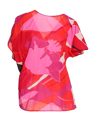топ, тканое полотно, разноцветный узор, логотип бренда, широкий воротник, короткие рукава, машинная стирка или химчистка, нельзя отбеливать, нельзя выжимать и сушить в стиральной машине
