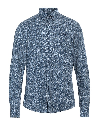тканое полотно, логотип бренда, цветочный рисунок, воротник на пуговицах, длинные рукава, манжеты на пуговицах, застёжка в виде пуговиц, без карманов, приталенная рубашка