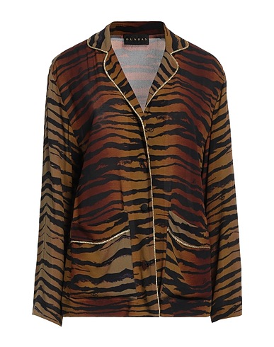 креп, ламе, без аппликаций, тигровый рисунок, воротник с лацканами, длинные рукава, застёжка в виде пуговиц, множество карманов, химчистка, нельзя выжимать и сушить в стиральной машине, нельзя отбеливать, рубашка