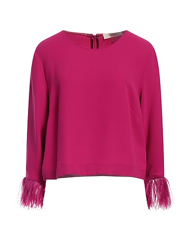 топ, креп, перья, одноцветное изделие, круглая горловина, рукава длиной ¾, застёжка-молния, содержит нетекстильные части животного происхождения, химчистка, нельзя отбеливать, можно выжимать и сушить в стиральной машине