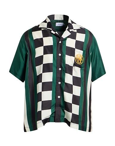 классическая рубашка, твил, разноцветный узор, вышитый логотип, мягкий воротник, короткие рукава, один кармашек, нельзя стирать, нельзя отбеливать, нельзя выжимать и сушить в стиральной машине, не гладить