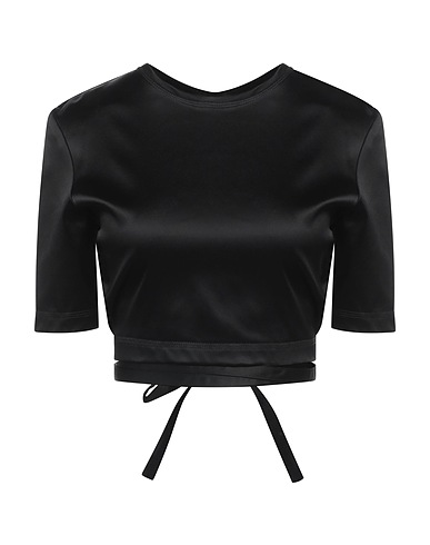 кроп-топ, атлас, одноцветное изделие, без аппликаций, круглая горловина, короткие рукава, застёжка в виде завязки, химчистка, нельзя отбеливать, нельзя выжимать и сушить в стиральной машине