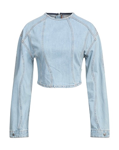 топ, деним, одноцветное изделие, без аппликаций, круглая горловина, длинные рукава, застёжка-молния, химчистка запрещена, нельзя отбеливать, можно выжимать и сушить в стиральной машине