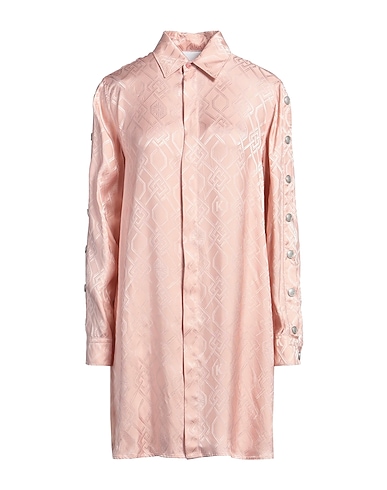 платье-рубашка, атлас, жаккардовая ткань, рисунок из логотипов, полоски по бокам, логотип бренда, классический воротник, длинные рукава, манжеты на кнопках, без подкладки, застёжка в виде пуговиц, химчистка, нельзя отбеливать, нельзя выжимать и сушить в стиральной машине