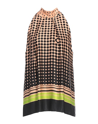 топ, атлас, в горошек, без аппликаций, круглая горловина, без рукавов, низ с боковыми разрезами, ручная стирка или химчистка, нельзя отбеливать, нельзя выжимать и сушить в стиральной машине