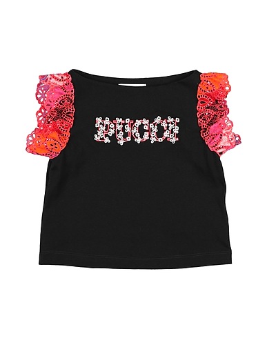 джерси, разноцветный узор, отделка кружевом, вышитый логотип, вырез горловины “лодочка”, короткие рукава, машинная стирка, нельзя отбеливать, нельзя выжимать и сушить в стиральной машине