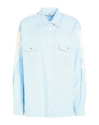 рубашка в стиле сафари, поплин, в полоску, отделка кружевом, логотип бренда, классический воротник, длинные рукава, манжеты на пуговицах, застёжка в виде пуговиц, двойной кармашек, машинная стирка или химчистка, нельзя отбеливать, нельзя выжимать и сушить в стиральной машине
