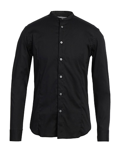 приталенная рубашка, тканое полотно, одноцветное изделие, без аппликаций, воротник-стойка, длинные рукава, манжеты на пуговицах, застёжка в виде пуговиц, стрейч