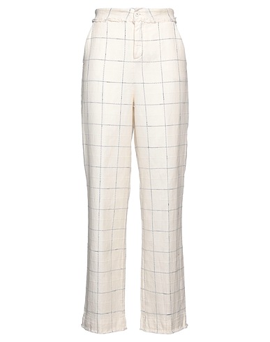 тканое полотно, логотип бренда, узор "в клетку", высокая талия, прямой крой брючин, классический силуэт, застёжка-молния, 1 пуговица, нижний край с бахромой, множество карманов, машинная стирка, нельзя выжимать и сушить в стиральной машине, нельзя отбеливать, брюки чинос