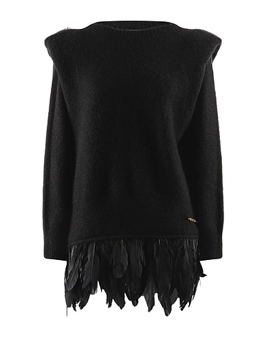 вязаное изделие, трикотаж средней плотности, одноцветное изделие, перья, логотип бренда, круглая горловина, длинные рукава, стрейч, ручная стирка, нельзя выжимать и сушить в стиральной машине