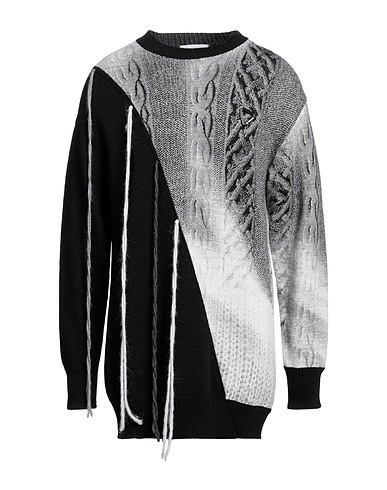 вязаное изделие, трикотаж средней плотности, контрастные аппликации, разноцветный узор, круглая горловина, длинные рукава, без карманов