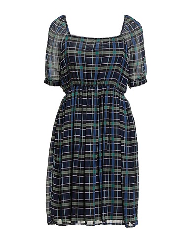 платье с юбкой клеш, шифон, шотландская клетка, без аппликаций, широкий воротник, короткие рукава, внутри на подкладке, без карманов
