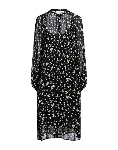 креп, складки, цветочный рисунок, воротник-стойка, длинные рукава, внутренняя комбинация, без карманов, юбка-трапеция