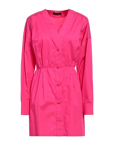 плотная ткань, без аппликаций, одноцветное изделие, v-образный вырез, длинные рукава, без подкладки, пуговицы, без карманов, стрейч, платье-рубашка