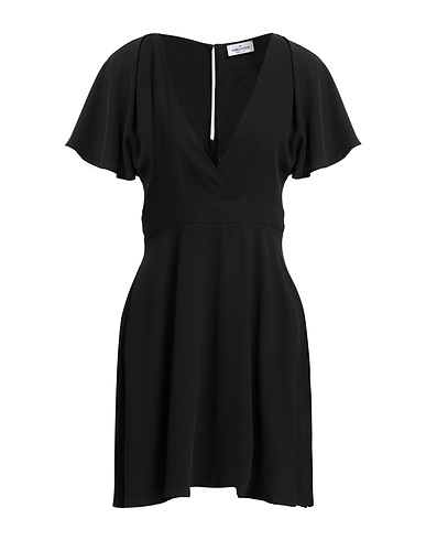 платье с юбкой клеш, креп, одноцветное изделие, вырезы, глубокий вырез горловины, короткие рукава, без подкладки, застёжка-молния, 1 пуговица, машинная стирка или химчистка, нельзя отбеливать, нельзя выжимать и сушить в стиральной машине