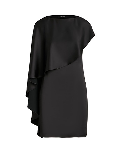платье-футляр, атлас, драпировка, одноцветное изделие, широкий воротник, на одно плечо, внутри на подкладке, застёжка-молния, застёжка в виде крючков, большой размер