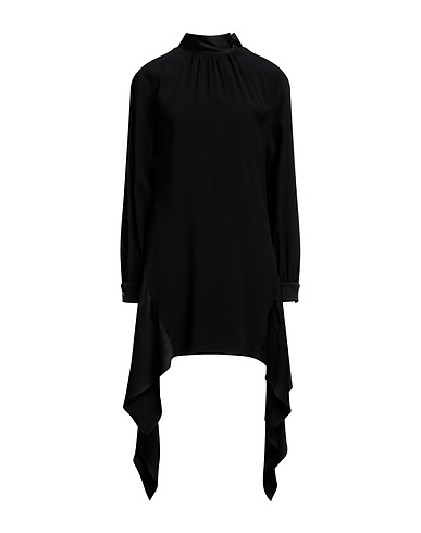 асимметричное платье, шелк-кади, одноцветное изделие, атласная отделка, высокий воротник, длинные рукава, манжеты на пуговицах, без подкладки, застёжка в виде завязки, без карманов, химчистка, нельзя отбеливать, нельзя выжимать и сушить в стиральной машине