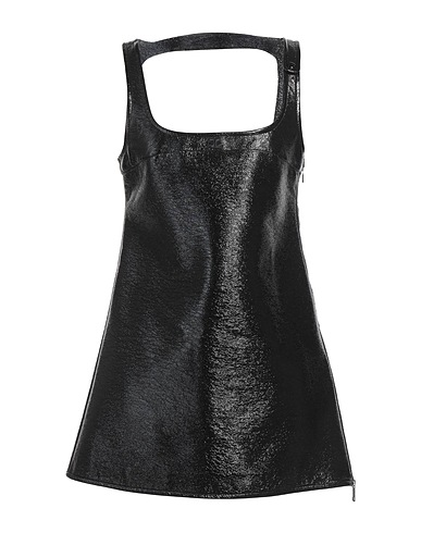 платье с юбкой клеш, искусственная кожа, одноцветное изделие, логотип бренда, широкий воротник, без рукавов, внутри на подкладке, застёжка-молния, стрейч, химчистка, нельзя отбеливать, нельзя выжимать и сушить в стиральной машине