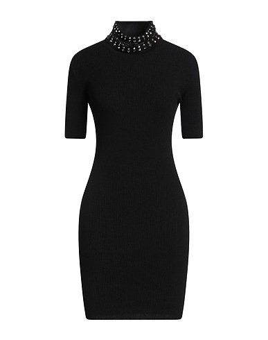платье-футляр, вязаное изделие, легкий трикотаж, однотонная модель с декором, заклепки, кристаллы, высокий воротник, короткие рукава, без подкладки, ручная стирка, нельзя отбеливать, нельзя выжимать и сушить в стиральной машине
