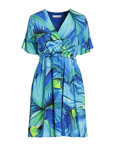 платье с юбкой клеш, тканое полотно, разноцветный узор, логотип бренда, глубокий вырез горловины, короткие рукава, внутри на подкладке, без карманов, машинная стирка или химчистка, нельзя отбеливать, нельзя выжимать и сушить в стиральной машине