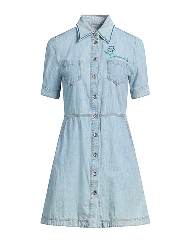 платье-рубашка, деним, одноцветное изделие, вышитый логотип, классический воротник, короткие рукава, без подкладки, застёжка в виде пуговиц, двойной кармашек, машинная стирка или химчистка, нельзя отбеливать, нельзя выжимать и сушить в стиральной машине