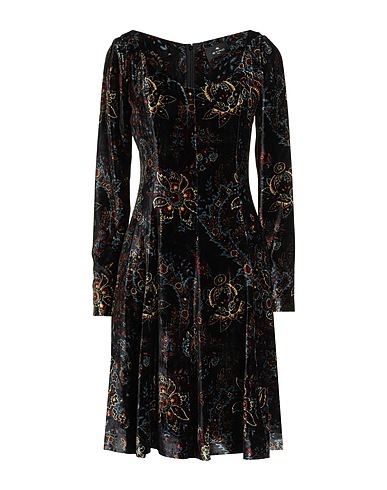 платье с юбкой клеш, бархат, цветочный рисунок, без аппликаций, широкий воротник, длинные рукава, манжеты на молнии, внутри на подкладке, застёжка-молния, без карманов, химчистка, нельзя отбеливать, нельзя выжимать и сушить в стиральной машине