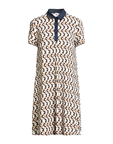 платье с юбкой клеш, джерси, геометрический рисунок, без аппликаций, воротник-поло, короткие рукава, без подкладки, застёжка в виде пуговиц, стрейч, машинная стирка или химчистка, нельзя отбеливать, нельзя выжимать и сушить в стиральной машине