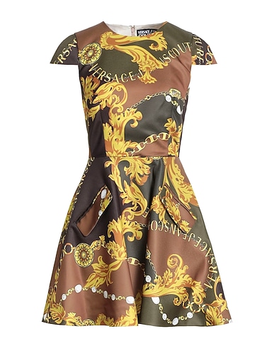 платье с юбкой солнце-клёш, атлас, фирменный принт, логотип бренда, круглая горловина, короткие рукава, рукав-крылышко, внутри на подкладке, застёжка-молния, карманы с клапаном, химчистка, нельзя отбеливать, нельзя выжимать и сушить в стиральной машине