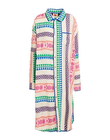 платье-рубашка, тканое полотно, жаккардовая ткань, разноцветный узор, без аппликаций, классический воротник, длинные рукава, манжеты на пуговицах, без подкладки, застёжка в виде пуговиц, один кармашек, низ с боковыми разрезами, ручная стирка или химчистка, нельзя отбеливать, нельзя выжимать и сушить в стиральной машине
