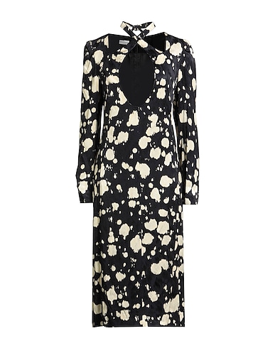 платье с юбкой клеш, креп, двухцветный узор, вырезы, глубокий вырез горловины, длинные рукава, внутри на подкладке, застёжка-молния, застёжка в виде крючков, разрез сзади, химчистка, нельзя отбеливать, нельзя выжимать и сушить в стиральной машине, стиль, элегантность и нотка гламура: создайте образ для вечеринки