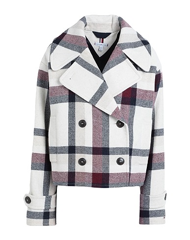 бушлат, твид, логотип бренда, шотландская клетка, воротник с лацканами, двубортная модель, длинные рукава, внутри на подкладке, прорезные карманы, химчистка, нельзя отбеливать, нельзя выжимать и сушить в стиральной машине
