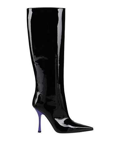 кожа, эффект лакировки, без аппликаций, одноцветное изделие, кожаная подкладка, молния, узкий носок, каблук "песочные часы", каблук из пластмассы, кожаная подошва, содержит нетекстильные части животного происхождения, сапоги