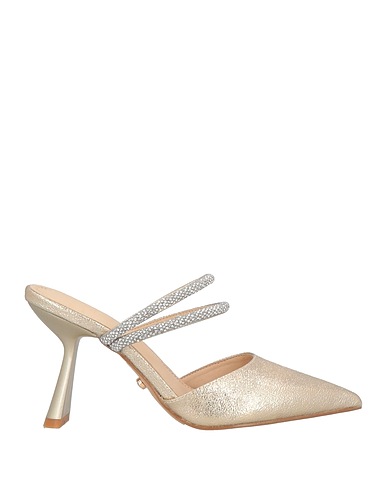 мюли, искусственная кожа, металлик, однотонная модель с декором, кристаллы, внутри на подкладке, узкий носок, геометрический каблук, обтянутый каблук, резиновая подошва