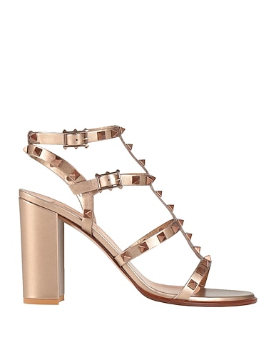 сандалии-гладиаторы, кожа, металлик, однотонная модель с декором, заклепки, внутри кожа, ремешок с пряжкой на щиколотке, скругленный носок, квадратный каблук, кожаная подошва, содержит нетекстильные части животного происхождения