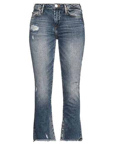 деним, эффект поношенности, рваная ткань, логотип бренда, одноцветное изделие, классический цвет, классическая посадка на талии, пояс со шлевками, модель клеш, классический силуэт, 1 пуговица, молния, пять карманов, стрейч, модель с легким клешем