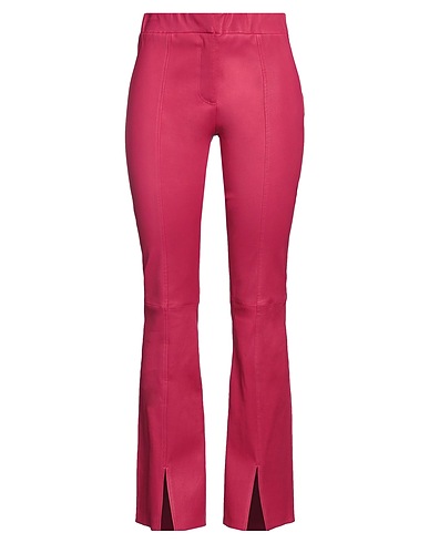 слегка расклешенные брюки, кожа, одноцветное изделие, без аппликаций, классическая посадка на талии, резинка на талии, обтягивающая модель, без подкладки, застёжка в виде крючков, застёжка-молния, низ с боковыми разрезами, без карманов, машинная стирка, нельзя отбеливать, нельзя выжимать и сушить в стиральной машине, не гладить, содержит нетекстильные части животного происхождения
