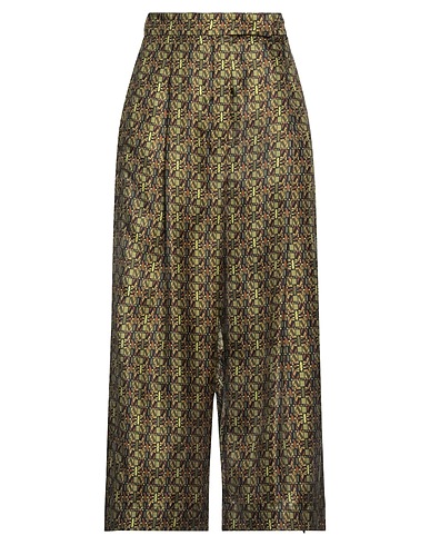 широкие брюки, твил, без аппликаций, рисунок из логотипов, высокая талия, свободный крой, застёжка-молния, застёжка в виде крючков, множество карманов, химчистка, нельзя отбеливать, нельзя выжимать и сушить в стиральной машине