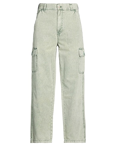 брюки-карго, парусина, эффект "делаве", одноцветное изделие, логотип бренда, высокая талия, пояс со шлевками, классический силуэт, застёжка в виде пуговиц, застёжка-молния, множество карманов, машинная стирка, нельзя отбеливать, нельзя выжимать и сушить в стиральной машине