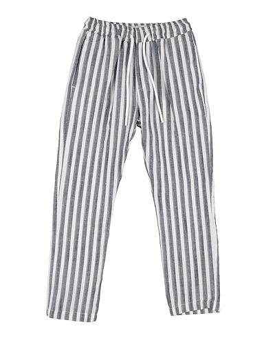тканое полотно, в полоску, вышитый логотип, высокая талия, застёжка в виде кулиски, множество карманов, ручная стирка или химчистка, нельзя отбеливать, нельзя выжимать и сушить в стиральной машине