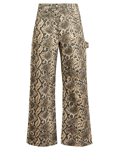 широкие джинсы, деним, принт под змеиную кожу, без аппликаций, цветной деним, высокая талия, классический силуэт, застёжка-молния, 1 пуговица, прорезные карманы, накладные карманы, машинная стирка, нельзя отбеливать, нельзя выжимать и сушить в стиральной машине