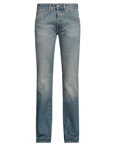 слегка расклешенные джинсы, деним, эффект "делаве", одноцветное изделие, логотип бренда, классический цвет, классическая посадка на талии, классический силуэт, застёжка в виде потайных пуговиц, застёжка-молния, множество карманов, машинная стирка, нельзя отбеливать, нельзя выжимать и сушить в стиральной машине