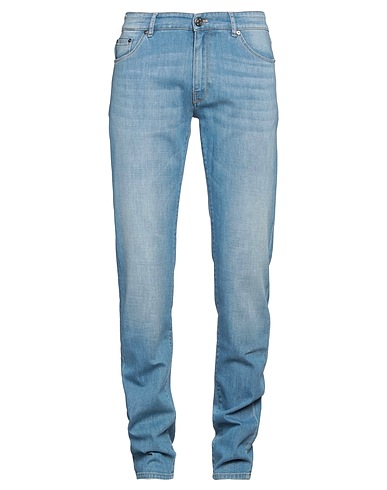 зауженные джинсы, деним, эластичная ткань, одноцветное изделие, логотип бренда, классический цвет, классическая посадка на талии, классический силуэт, застёжка-молния, застёжка в виде пуговиц, карманы, машинная стирка, нельзя отбеливать, нельзя выжимать и сушить в стиральной машине