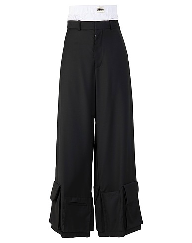 широкие брюки, твил, двухцветный узор, без аппликаций, высокая талия, пояс со шлевками, классический силуэт, прорезные карманы, множество карманов, химчистка, нельзя выжимать и сушить в стиральной машине