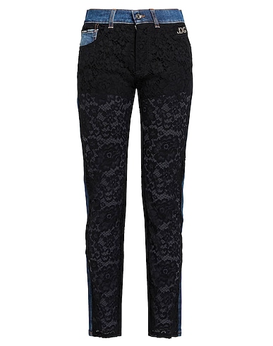 прямые джинсы, кружево, деним, эластичная ткань, двухцветный узор, логотип бренда, тёмный деним, высокая талия, пояс со шлевками, классический силуэт, застёжка-молния, 1 пуговица, множество карманов, химчистка, нельзя отбеливать, нельзя выжимать и сушить в стиральной машине