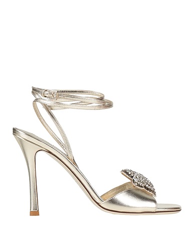 сандалии с ремешком на щиколотке, кожа, металлик, однотонная модель с декором, кристаллы, внутри кожа, застёжка в виде шнуровки, скругленный носок, каблук-стилет, обтянутая танкетка, кожаная подошва, содержит нетекстильные части животного происхождения, добавьте в образ гламурную нотку с аксессуарами для вечеринки или изысканного мероприятия