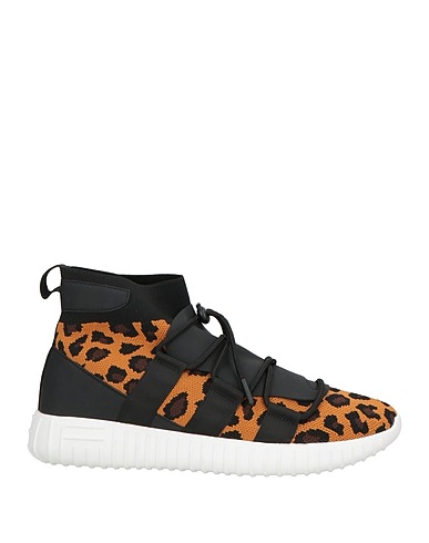 высокие кеды и теннисные туфли, вязаное изделие, искусственная кожа, прорезиненный эффект, леопардовый рисунок, логотип бренда, внутренняя поверхность из ткани, застёжка в виде шнуровки, скругленный носок, резиновая подошва с тиснением