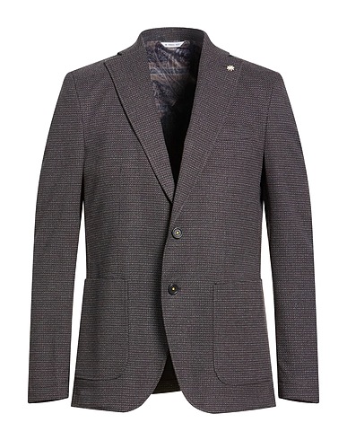 однобортный пиджак, жаккардовая ткань, двухцветный узор, логотип бренда, воротник с лацканами, длинные рукава, внутри на полуподкладке, застёжка в виде пуговиц, один кармашек, накладные карманы, двойная шлица сзади, стрейч, химчистка, нельзя отбеливать, нельзя выжимать и сушить в стиральной машине