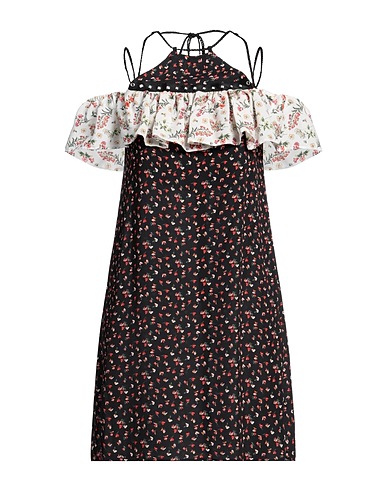 платье с юбкой клеш, креп, многоярусный крой, аппликации из металла, цветочный рисунок, круглая горловина, короткие рукава, застёжка-молния, без карманов