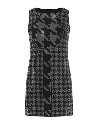 платье-футляр, джерси, эластичная ткань, узор "гусиные лапки", с декором, круглая горловина, без рукавов, без подкладки, без карманов, ручная стирка, нельзя выжимать и сушить в стиральной машине