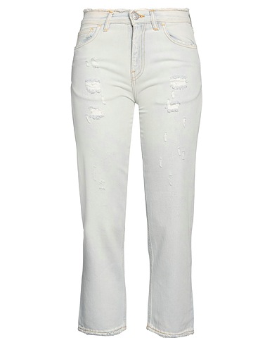 деним, логотип бренда, одноцветное изделие, светлый деним, классическая посадка на талии, пояс со шлевками, широкие брюки, классический силуэт, застёжка-молния, застёжка в виде пуговиц, нижний край с бахромой, множество карманов, машинная стирка или химчистка, можно выжимать и сушить в стиральной машине, нельзя отбеливать, прямые джинсы